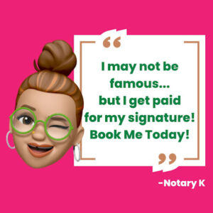Hello, I am Notary K Here at Pretty Notarized we provide Accurate, Reliable, Convenient and Mobile Notary Service. Open Late Monday through Friday! Weekends Available by Appointment ONLY!!